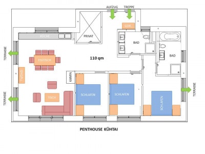 Erleben Sie Luxus pur in unserem Penthouse 2020, einem ca. 110 m² großen Traum für bis zu 8 Personen. Mit drei komfortablen Schlafzimmern, einem stilvollen Wohnraum mit ausziehbarer Couch und zwei modernen Badezimmern bietet es höchsten Komfort. Die komplett ausgestattete Küche lädt zum gemeinsamen Kochen ein, während Sie auf den zwei großzügigen Dachterrassen die spektakuläre Aussicht auf die Drei Seen genießen.